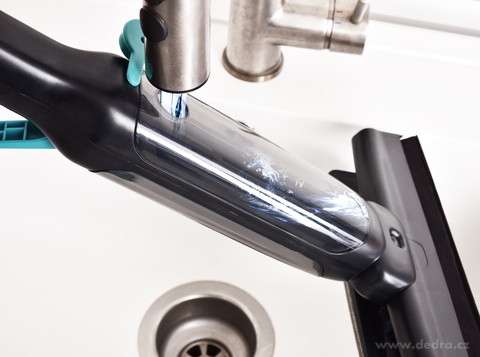 Utěrku z mikrovlákna perte pravidelně (doporučeno do 40 °C, bez aviváže). Po použití vyprázdněte nádržky a opláchněte čistou vodou. Stěrku i hlavici otřete a nechte oschnout.