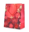 Elegantní dárková taška velikosti M s motivem červených vánočních koulí a zlatými třpytkami. Pevné kartonové provedení s provázkem pro pohodlné přenášení. Vhodná na menší dárky.