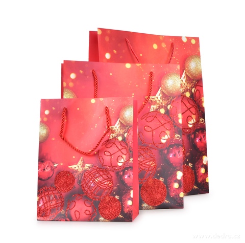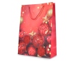 Elegantní dárková taška velikosti M s motivem červených vánočních koulí a zlatými třpytkami. Pevné kartonové provedení s provázkem pro pohodlné přenášení. Vhodná na velké dárky.