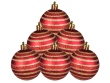 Sada 6 červených koulí se zlatými vodorovnými pruhy. Elegantní a třpytivá kombinace pro klasickou i luxusní vánoční výzdobu. Průměr každé koule 6 cm.