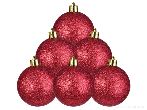 Sada 6 červených vánočních koulí VÁNOČNÍ GLORIA s celoplošným třpytivým efektem. Koule o průměru 6 cm z lehkého, nerozbitného plastu dodají stromku klasické kouzlo, slavnostní eleganci a hřejivou vánoční atmosféru.