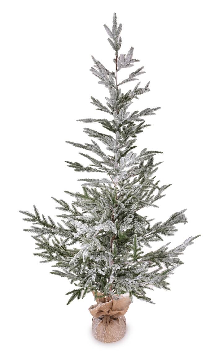 Impozantní zasněžený smrk vysoký 190 cm s jutovým podstavcem. Elegantní vánoční dekorace v severském stylu, která se stane nepřehlédnutelnou dominantou hal, recepcí či slavnostních interiérů.