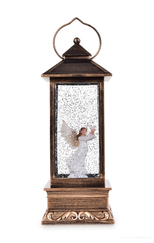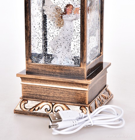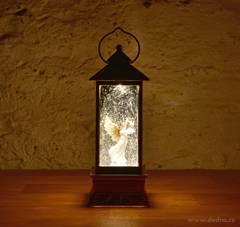 Kouzelná LED lucerna s andělem a třpytivými vločkami vnese do interiéru jemnou světelnou záři a symboliku naděje. Uvnitř stojí anděl s holubicí, který je obklopen třpytivým vířením vloček. Lucerna vyzařuje teplé světlo a navíc hraje 8 vánočních melodií, které ještě více podtrhnou sváteční atmosféru.