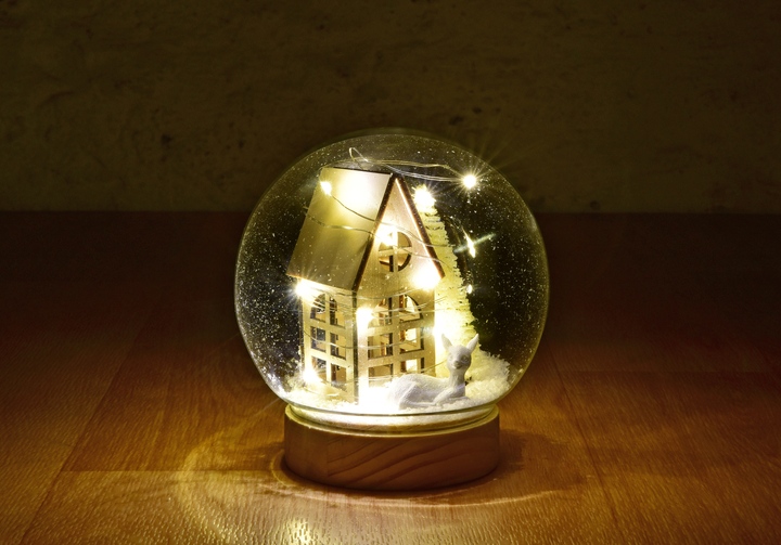 Zasněžená chaloupka, světélkující stromeček a klidná srnka v pohádkové zimní krajině… LED koule ZIMNÍ DOMEČEK přináší kouzlo Vánoc přímo do vašeho domova. Skleněná koule s detailně propracovanou dřevěnou scénou uvnitř září teplým bílým světlem, které vytváří útulnou a romantickou atmosféru.
