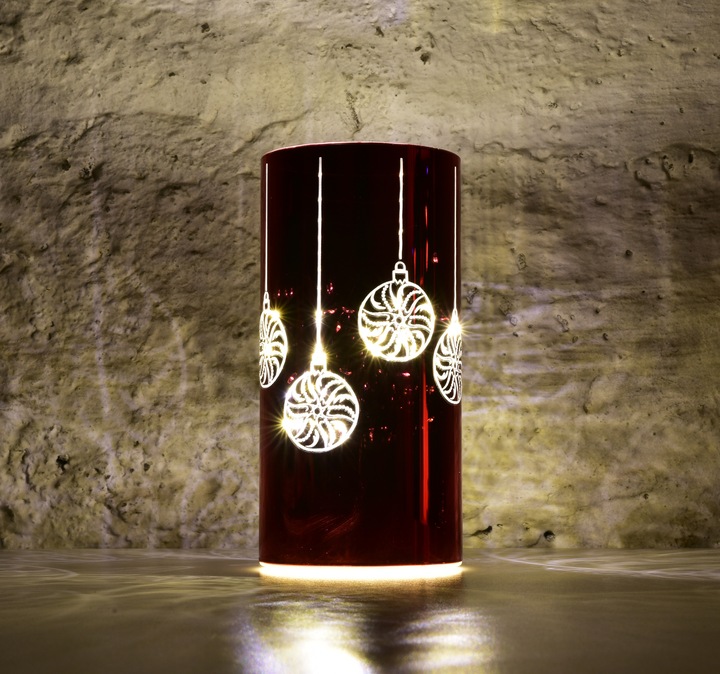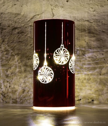 Větší verze oblíbeného svícnu VÁNOČNÍ ZÁŘE přináší do domova hřejivé světlo a nádech elegance. Červené sklo s motivem vánočních koulí v kombinaci se zrcadlovým vnitřním povrchem vytváří okouzlující hru světla. LED diody uvnitř rozzáří místnost jemným, útulným svitem a navodí tu pravou slavnostní atmosféru.