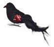 Dekorační ptáček PŮLNOČNÍ ŠEPTÁNÍ v černém sametu s jemným peřím a rudými flitry na křídle. Luxusní ozdoba o velikosti 22 cm s uchycením na sponu dodá stromku, věnci či aranžmá romantiku, noblesu a tajemný půvab.