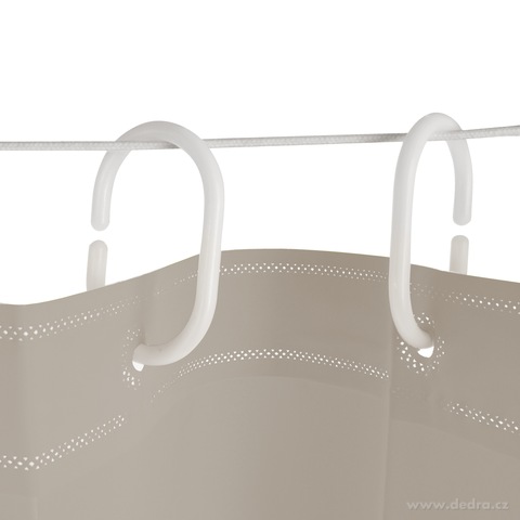 Závěs je vyroben z kvalitní směsi EVA a polyesteru, která zajišťuje voděodolnost, odolnost proti vlhkosti a snadnou údržbu. Díky 12 kroužkům v balení ho snadno a rychle zavěsíš na sprchovou tyč.