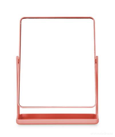Kosmetické zrcadlo BEAUTY v lososové barvě s 360° otočným mechanismem a stabilním stojanem. Elegantní a praktický doplněk, který usnadní líčení, holení i každodenní péči o pleť.