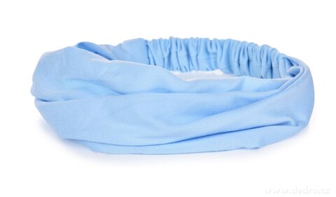 Vrstvená textilní čelenka do vlasů, na spodní části elastická guma. Materiál: úplet. Obvod cca 48-74 cm.