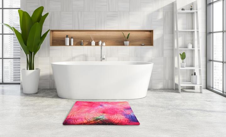 SPA ultrasavá křemelinová koupelnová předložka 60 × 90 cm v designu mandala. Rychleschnoucí, protiskluzová a antibakteriální. Praktický a stylový doplněk do koupelny, kuchyně, předsíně i wellness, který spojuje eleganci s funkcí.
