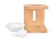 Designová aromalampa ZENORA s bílou keramickou miskou na elegantním bambusovém stojanu. Minimalistický styl, ideální pro vonné vosky a esenciální oleje PARFUMIA®. Rozměry: š 11,5 × h 12 × v 12,3 cm (14 cm s miskou).
