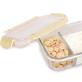 Vyrobena z odolného skla a pevného plastu, víko se čtyřmi klipsy a silikonovým těsněním zajistí hermetické uzavření, které chrání potraviny před vzduchem a vlhkostí, a tím prodlužuje jejich čerstvost.
