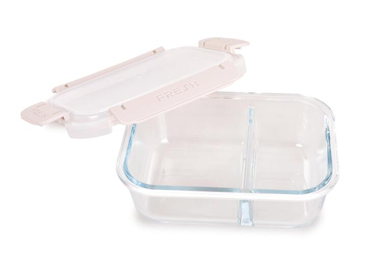 Skleněná dóza na potraviny FRESH GLASS s víkem se silikonovým těsněním a čtyřmi pevnými klipsy zajistí hermetické uzavření, díky kterému zůstane obsah chráněn před vzduchem a vlhkostí. Potraviny tak vydrží déle čerstvé a chutné.
