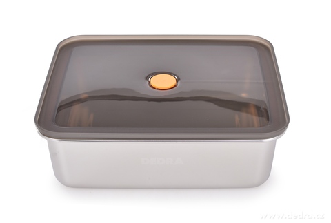 Nerezová dóza GOURMET 2,3 L s průhledným víkem, silikonovým těsněním a ventilem bezpečně těsní, chrání jídlo před vysypáním, vzduchem i vlhkostí. Stylové a trvanlivé řešení pro obědy do práce, krabičkové diety, výlety i domácí skladování potravin.