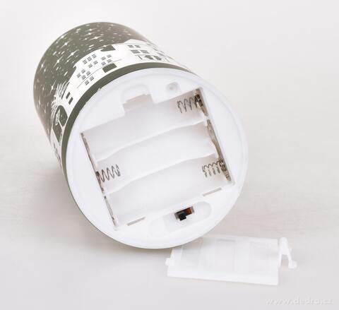 Zelený skleněný svícen ZIMNÍ MĚSTEČKO s LED osvětlením a motivem zasněženého městečka. Matný povrch se zrcadlovým efektem, teplé bílé světlo. Výška 20 cm, průměr 8 cm. Elegantní doplněk adventní výzdoby.