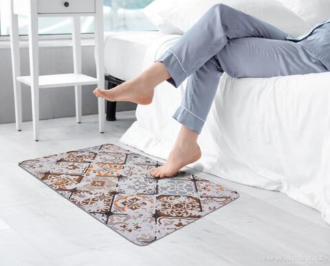 Ultrasavá předložka SPA s motivem ornamentu spojuje styl a funkčnost. Přírodní křemelina absorbuje vodu během několika sekund a rychle vysychá. Protiskluzová spodní část z přírodního kaučuku zajišťuje bezpečnost, zatímco antibakteriální vlastnosti eliminují vlhkost i nepříjemný zápach. Díky kompaktnímu rozměru 80 × 50 cm se perfektně hodí i do menších koupelen či úzkých prostor.