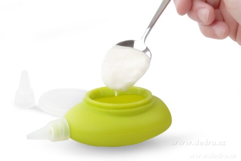 CONTOUR DECO Zdobítko na kreativní zdobení hotových pokrmů, perníčků, dezertů, kávy, cappuccina, latté, míchaných nápojů… Součástí jsou 2 hubičky (ø 1 mm a ø 2,5 mm). Materiál: silikon/plast. Rozměr: 7 x 4 x 11 cm, objem cca 100 ml. VELMI PRAKTICKÁ PŘEDNÍ UZAVÍRACÍ ZÁTKA: • pohodlné plnění • obsah uzavřete a můžete uchovávat v chladničce VELIKOST...