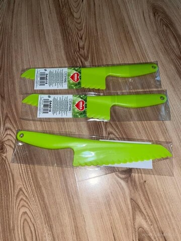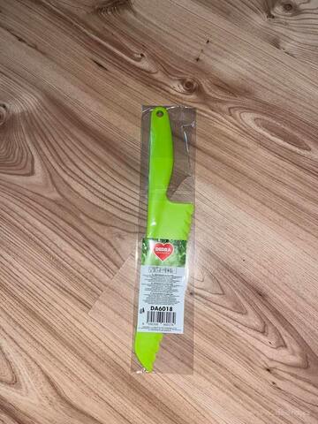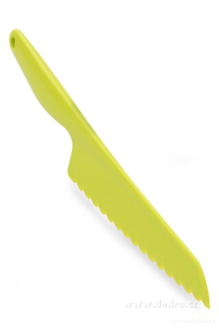 Při krájení salátů nedochází ke ztrátě vitamínů! Ideální při krájení na silikonových podložkách. Využijete ve studené kuchyni, na krájení dortů, dezertů, slaných rolád, tlačenek, aspiků,... S ouškem na zavěšení (zelený). Délka čepele cca 19 cm, celková délka cca 30 cm.