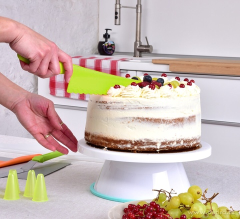 Při krájení salátů nedochází ke ztrátě vitamínů! Ideální při krájení na silikonových podložkách. Využijete ve studené kuchyni, na krájení dortů, dezertů, slaných rolád, tlačenek, aspiků,...