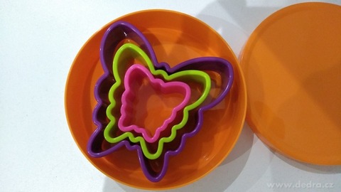 3 ks vykrajovátek v jasně barevné uzavíratelné dóze, průměr vykrajovátek cca 10,5 cm + 7,5 cm + 5 cm, výška: 2,5 cm, materiál: tvrzený plast, mix barev*