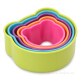5 ks vysokých vykrajovátek v plastové uzavíratelné dóze. Vyrobeno z tvrzeného plastu, mix barev*. Lze mýt v myčce. Max. průměry vykrajovátek: cca 5,5 – 9,5 cm, výška: 4 cm,
