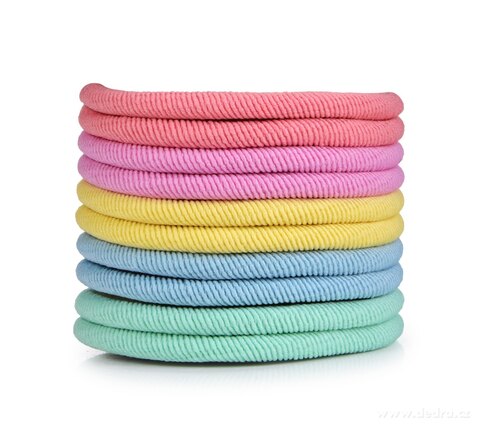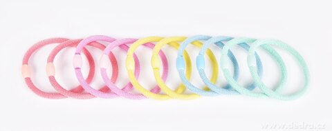 Sada 10 ks gumiček do vlasů BEAUTY v mixu jemných pastelových barev. Pevně drží účes, netahají a nelámou vlasy. Stylové a praktické gumičky pro každodenní nošení i speciální příležitosti.