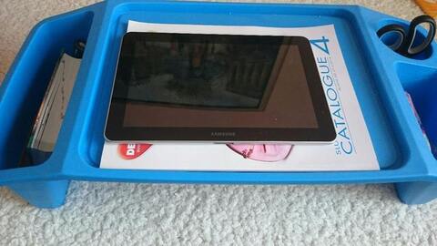Přenosný stolek na klín s praktickými otvory na bocích pro pastelky, papíry nebo lahev s pitím.