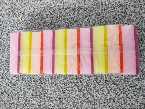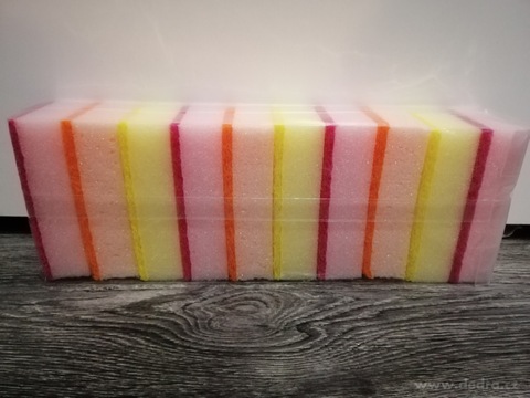 Kuchyňská houbička 10 ks v pastelových barvách. Rozměr každé houbičky je š 10 x h 5 x v 3 cm. Dobře pění a nezpůsobuje škrábance, zdrsněná strana pro snadné odstranění zaschlých nečistot.