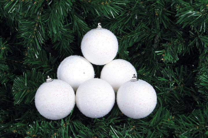 Sada 6 bílých vánočních koulí SNĚHULKY o průměru 6,5 cm. Koule s nadýchaným sametovým povrchem připomínajícím čerstvý sníh navodí atmosféru zimní pohádky a dodají stromku jemnost i eleganci.