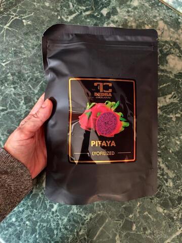 Lyofilizovaná pitaya (známá také jako dračí ovoce) je mimořádně jemná a lehce sladká svačina, která si zachovává všechny přednosti čerstvého ovoce. Díky procesu sušení mrazem neztrácí svůj charakteristický chuťový profil, barvu ani výživové hodnoty – a navíc získává lehkou, křupavou formu a delší trvanlivost.
