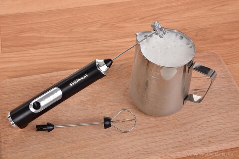SYSTEMAT – 2v1 USB napěňovač mléka a šlehač vajec s 3 rychlostmi. Dokonalá pěna pro kávové nápoje a snadné našlehání vajec. Kompaktní, lehký a dobíjecí přes USB.