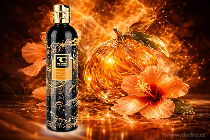 MANDARINE FLORALE – exkluzivní sprchový gel z kolekce FC DEDRA exclusive s vůní čerstvé mandarinky, vanilky a ibišku, obohacený o tóny pižma, pačuli a mechu. S glycerinem a Aloe vera pro hedvábně hladkou pokožku. Bez SLS, SLES a parabenů.