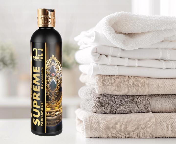 PARFUMAGE® SUPREME OBSIDIAN BLACK – 4× menší dávka, 4× větší účinek. Stačí jen 5–15 ml na praní a vaše prádlo získá intenzivní a dlouhotrvající vůni. Oživuje barvy, neutralizuje zbytky pracích prostředků a je šetrný k pokožce i pračce. Menší dávka – větší účinek, vhodné až do 95 °C.