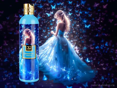 PRINCESS – královsky jemný sprchový gel s ovocně-květinovou vůní pomeranče, citronu, broskve a jasmínu na hřejivém základu ambry a santalu. S glycerinem a Aloe vera pro hedvábnou, hydratovanou pokožku. Bez SLS, SLES a parabenů.