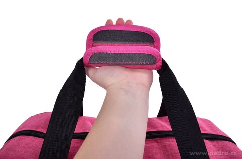 Moderní sportovní a cestovní taška 51 cm z růžové melange textilie. Má velký úložný prostor, kapsy na zip, odnímatelný ramenní popruh a protiskluzové dno. Praktická na víkend, do fitka i na služební cesty.
