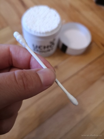 Vatové tyčinky UCHOŠŤOURY v praktickém balení 200 ks jsou vyrobeny z recyklovaného tvrdého kartonu a 100% jemné bavlny. Jsou pevné, příjemné na používání a šetrné k přírodě – bez plastu i bez polyesterových mikrovláken. Díky dvěma různým koncům (zakulacený a kónický s vroubky) mají všestranné využití – od běžné hygieny až po úpravu make-upu.