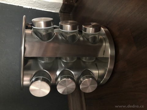 – Materiál: nerezová ocel (stojan) | sklo (kořenky) | plast (sítko)