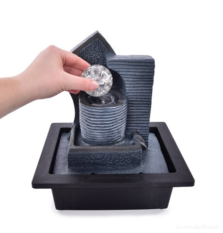 Součástí je čerpadlo s možností regulace průtoku vody, díky čemuž si můžete přizpůsobit intenzitu zvuku i proudění. Vyrobena z kombinace plastu a odlévané pryskyřice v imitaci kamene.