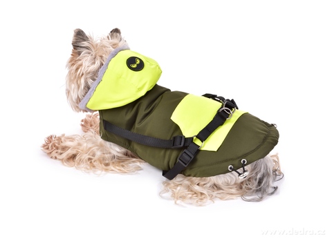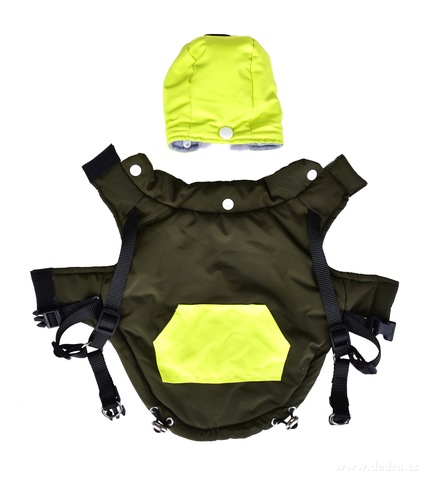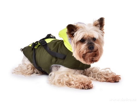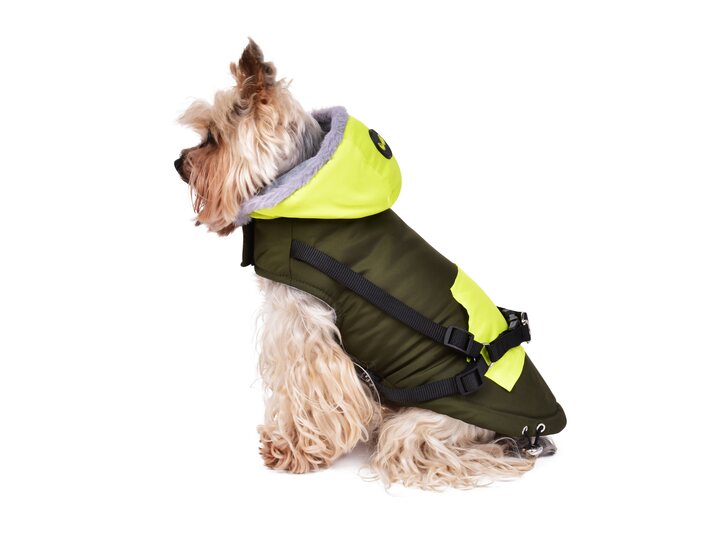 Stylová psí bunda REBELITO® 3v1 v zeleno-khaki barvě kombinuje bundu, kšíry a vodítko. Zateplený nepromokavý materiál, jemná podšívka, nastavitelné popruhy a odepínací kapuce pro maximální pohodlí.