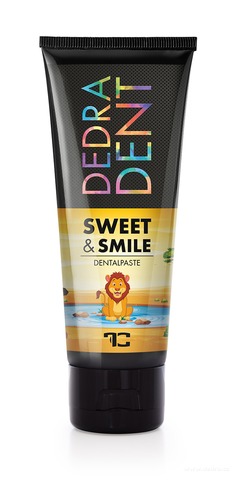 DEDRA DENT® SWEET & SMILE – přírodní dětská zubní pasta se žvýkačkovou příchutí. 100% bezpečná pro děti od 6 měsíců, hypoalergenní, s xylitolem pro ochranu mléčných zubů. Možno bez obav spolknout.