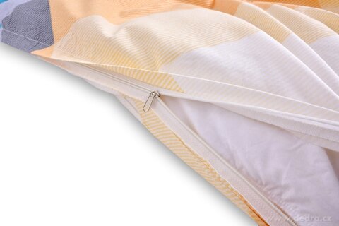 2 dílná ložní souprava pro 1 osobu, zavírání polštáře překladem v zadní části, zapínání přikrývky na skrytý zip.