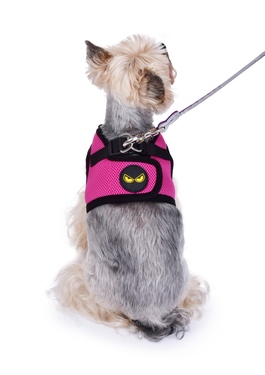 Komfortní postroj REBELITO® ve fuchsiové barvě pro psy a malé mazlíčky. Měkký síťovaný materiál, zapínání na suchý zip a přezku, kovová očka pro vodítko. Pohodlí a styl bez obojku.