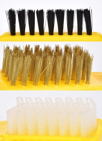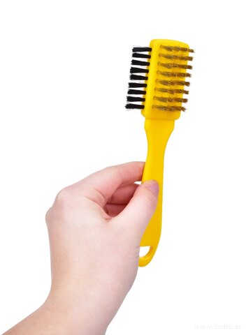 Po použití kartáček lehce oklepejte nebo otřete hadříkem. Pryžovou část lze očistit vlhkým hadříkem, mosazné drátky jemně vykartáčujte suchým kartáčkem. Uchovávejte v suchu, aby si nástroj dlouho zachoval svou účinnost.