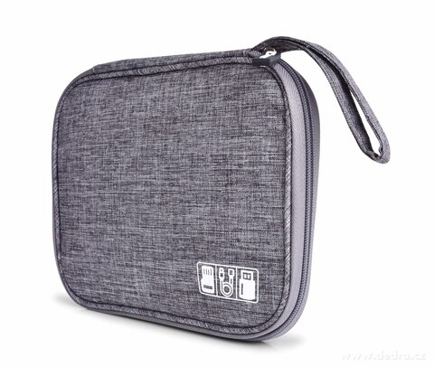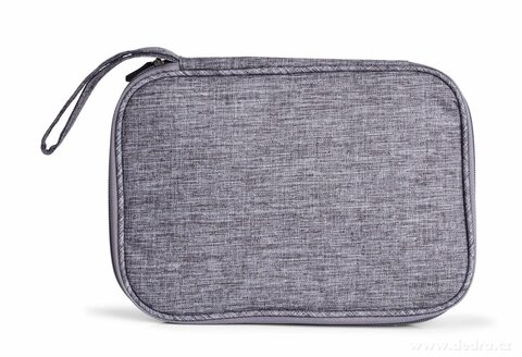 Praktické cestovní pouzdro FC TRAVELLER na elektroniku a kabely z šedé melange textilie. Uvnitř kapsy, přihrádky a pružná poutka – ideální na nabíječky, USB kabely, powerbanky či příslušenství. Rozměry 24 × 2 × 18 cm.
