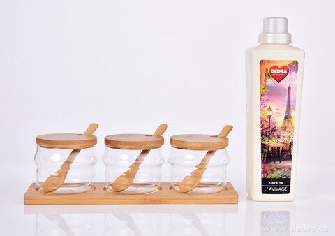 – 3× skleněná dóza s víkem + lžička + bambusový podstavec