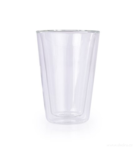Dvoustěnná termo sklenice 400 ml z borosilikátového skla. Udrží nápoj teplý nebo studený po dlouhou dobu, nepálí do ruky – ideální na latte, frappé i domácí limonády.