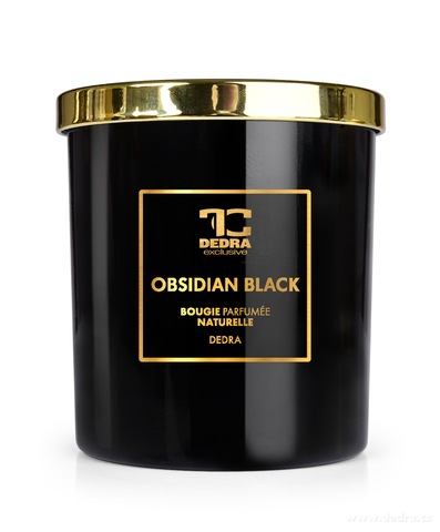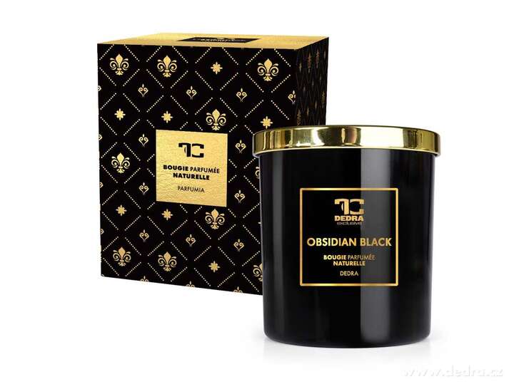 EXKLUZIVNÍ PARFEMACE ve skleněné černé dóze s vnitřním zrcadlovým povrchem zlaté barvy a kovovým víčkem.