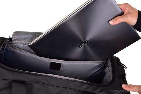 Ramenní popruhy jsou ukryté ve spodní přihrádce a během chvíle je vyjmeš pro nošení na zádech.