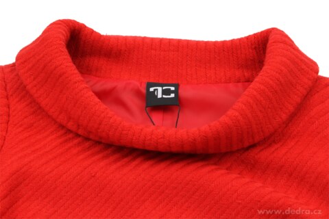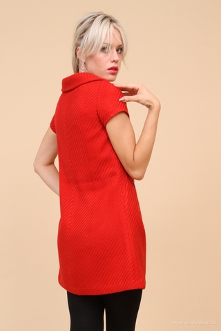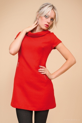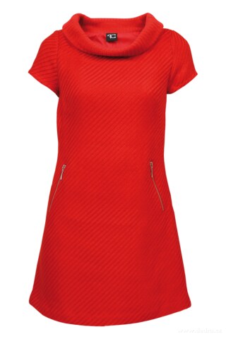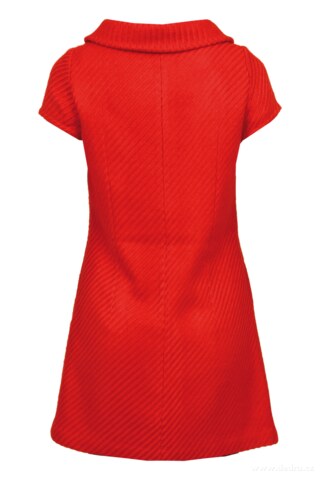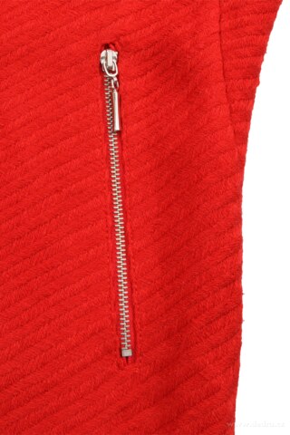 DIXIE corail red Pouzdrové šaty z měkčeného tkaného akrylicu s hladkou podšívkou. Voálový límec. V přední části dvě decentní všité kapsy na zip. Zeštíhlující sámky na zadním dílu. Elegantní, jednoduché, ženské. Korálově červená s plastickým vytkávaným reliéfem. Délka ve velikosti M: cca 83 cm.