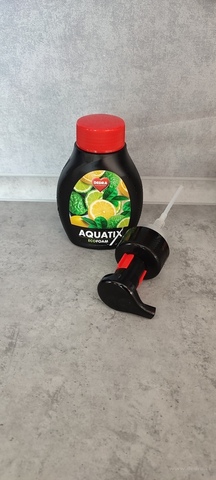 AQUATIX® EcoFoam je aktivní pěna na ruční mytí nádobí, která díky revoluční napěňovací technologii vytvoří hustou pěnu ihned po zmáčknutí pumpičky – bez potřeby vody nebo tření houbičkou. Účinně odstraňuje mastnotu a nečistoty a zanechává nádobí zářivě čisté. Při mytí nádobí navíc zanechá jemnou ovocnou vůni, která zpříjemní každodenní úklid.